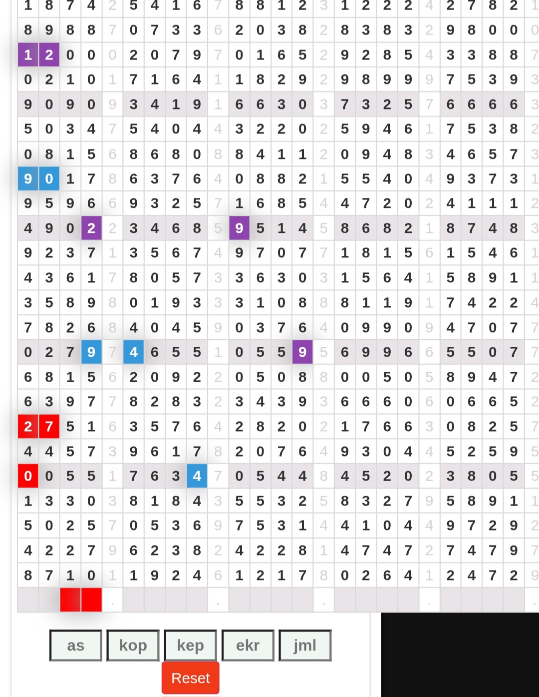 Rumus Angka Mati berdasarkan kepala harian | 05 06 08 10 15 16 17 18 19 20 21 26 27 28 29 30 32 37 38 39 40 41 43 48 52 53 54 63 64 65 74 75 76 86 87 94 95 97 98 |