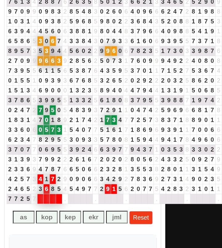 Rumus Angka Mati berdasarkan kepala harian | 07 08 09 10 18 19 20 21 31 32 38 39 40 42 49 50 51 52 53 54 59 60 61 62 63 64 65 71 72 73 74 76 82 84 85 87 96 97 98 |