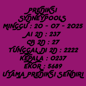 Prediksi Sydneypools Sabtu, 04-10-2025 Merupakan Prediksi Otomatis yang menggabungkan Metode Kalender Togel Dengan LN Generator yang akurasi prediksinya sudah kita ketahui bersama. Jadi harap Maklum Jika kadang meleset Prediksi Sydneypools kita. Jadikan ini sebagai perbandingan saja dan tetap Utamakan karya sendiri