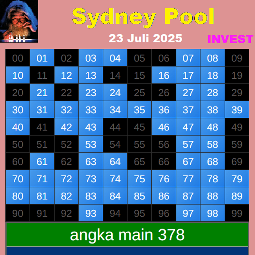 Prediksi Sydneypools Sabtu, 04-10-2025 Merupakan Prediksi Otomatis yang menggabungkan Metode Kalender Togel Dengan LN Generator yang akurasi prediksinya sudah kita ketahui bersama. Jadi harap Maklum Jika kadang meleset Prediksi Sydneypools kita. Jadikan ini sebagai perbandingan saja dan tetap Utamakan karya sendiri