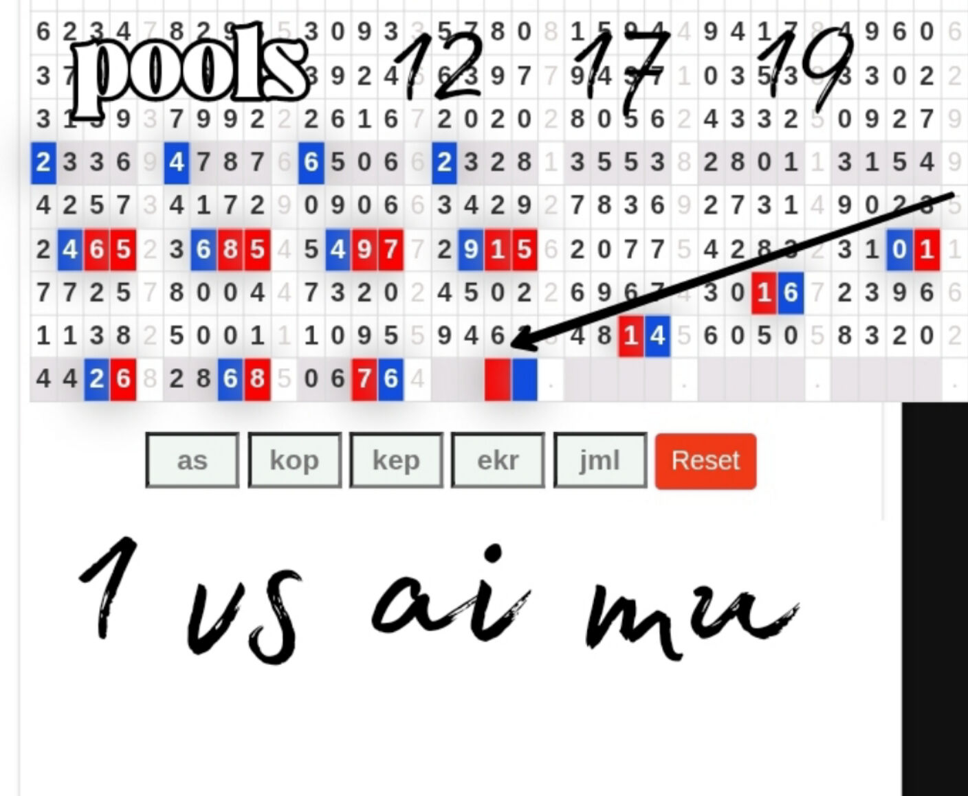 Rumus Angka Mati berdasarkan kepala harian | 05 06 08 10 15 16 17 18 19 20 21 26 27 28 29 30 32 37 38 39 40 41 43 48 52 53 54 63 64 65 74 75 76 86 87 94 95 97 98 |