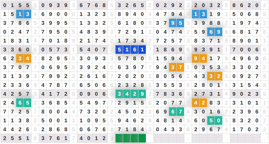 Rumus Angka Mati berdasarkan kepala harian | 05 06 08 10 15 16 17 18 19 20 21 26 27 28 29 30 32 37 38 39 40 41 43 48 52 53 54 63 64 65 74 75 76 86 87 94 95 97 98 |