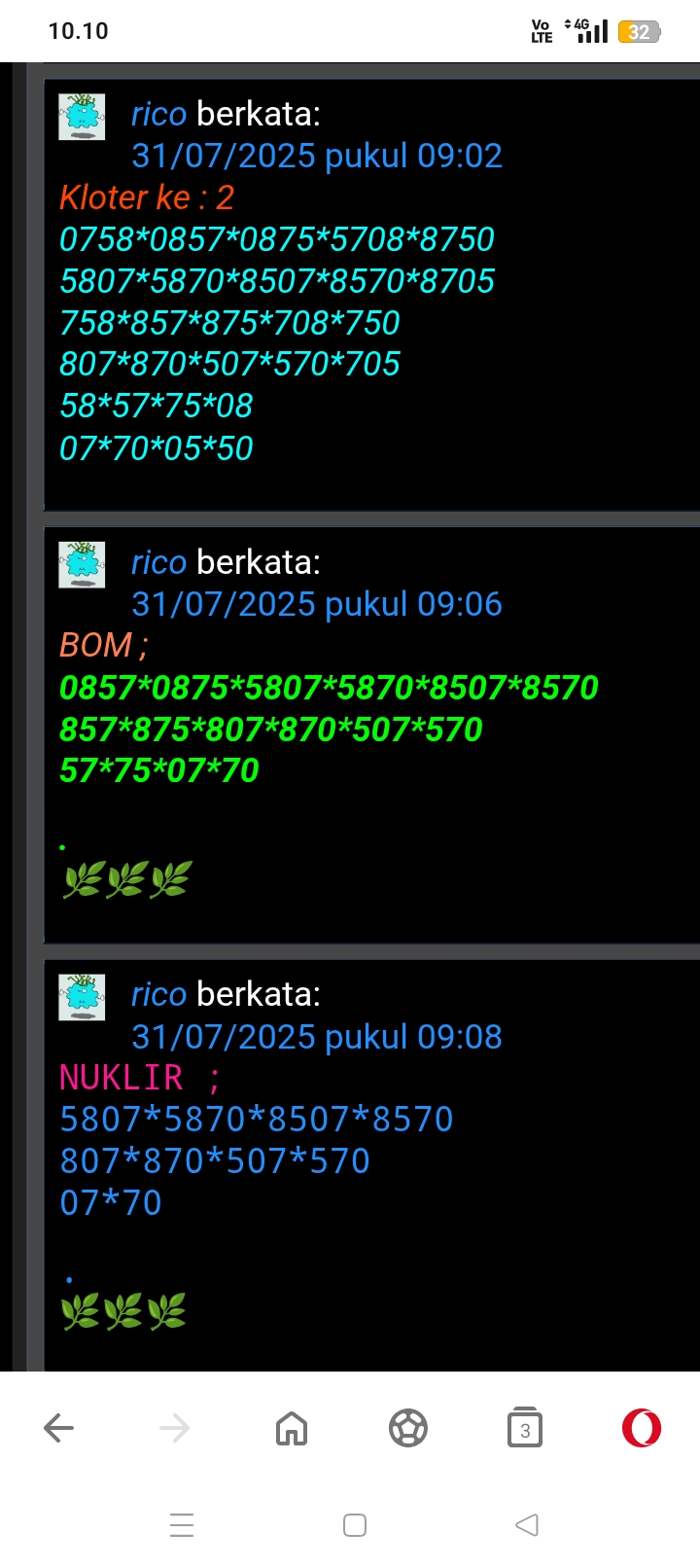 Rumus Angka Mati berdasarkan kepala harian | 04 05 06 07 08 09 10 15 16 17 18 21 26 28 29 30 31 32 41 42 43 52 53 54 64 65 72 73 75 76 83 84 86 93 94 95 96 97 98 |