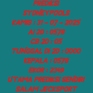 Prediksi Sydneypools Senin, 06-10-2025 Merupakan Prediksi Otomatis yang menggabungkan Metode Kalender Togel Dengan LN Generator yang akurasi prediksinya sudah kita ketahui bersama. Jadi harap Maklum Jika kadang meleset Prediksi Sydneypools kita. Jadikan ini sebagai perbandingan saja dan tetap Utamakan karya sendiri