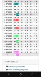 Prediksi Sydneypools Sabtu, 04-10-2025 Merupakan Prediksi Otomatis yang menggabungkan Metode Kalender Togel Dengan LN Generator yang akurasi prediksinya sudah kita ketahui bersama. Jadi harap Maklum Jika kadang meleset Prediksi Sydneypools kita. Jadikan ini sebagai perbandingan saja dan tetap Utamakan karya sendiri
