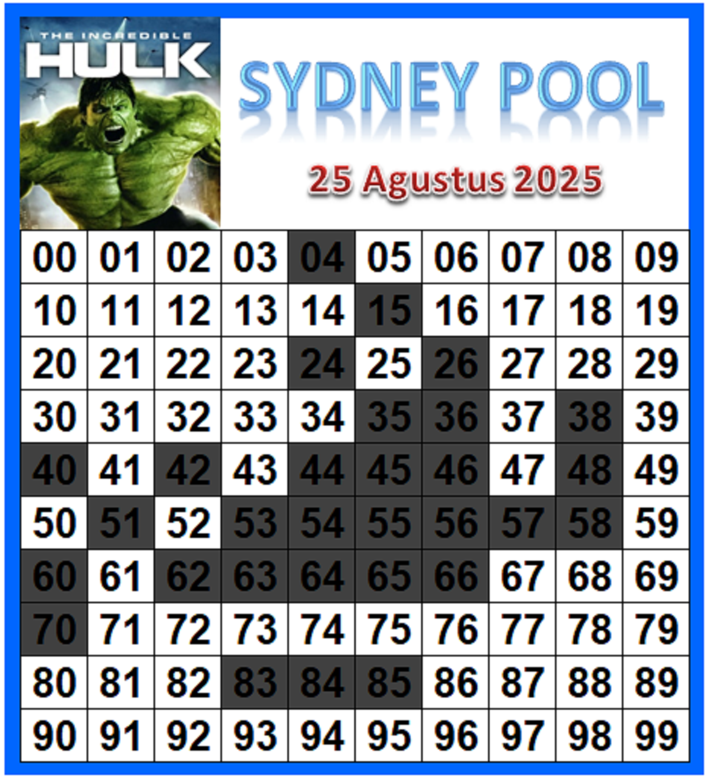 Prediksi Sydneypools Selasa, 07-10-2025 Merupakan Prediksi Otomatis yang menggabungkan Metode Kalender Togel Dengan LN Generator yang akurasi prediksinya sudah kita ketahui bersama. Jadi harap Maklum Jika kadang meleset Prediksi Sydneypools kita. Jadikan ini sebagai perbandingan saja dan tetap Utamakan karya sendiri