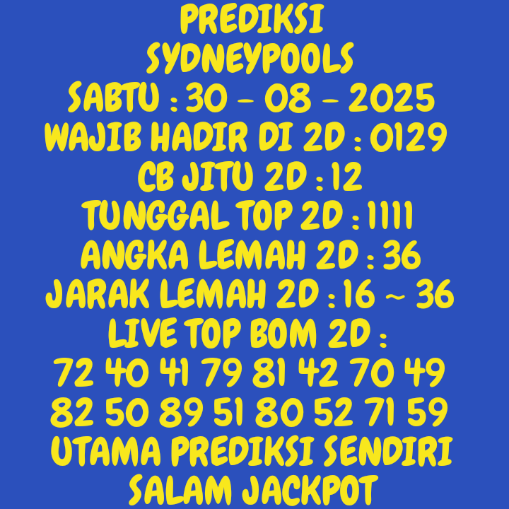PREDIKSI SYDNEYPOOLSSABTU 30-AGUSTUS-2025