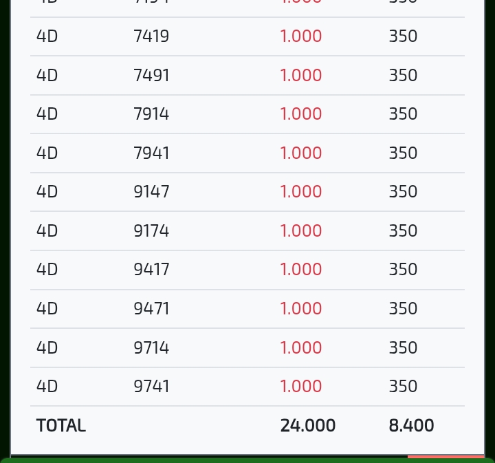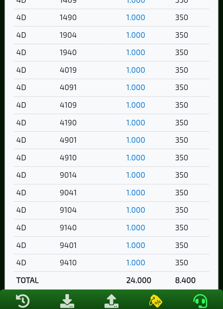 Rumus Angka Mati berdasarkan kepala harian | 07 08 09 10 19 20 21 27 28 31 38 39 40 41 42 43 48 49 50 51 52 53 54 59 60 61 62 63 65 71 73 74 76 85 86 87 96 97 98 |