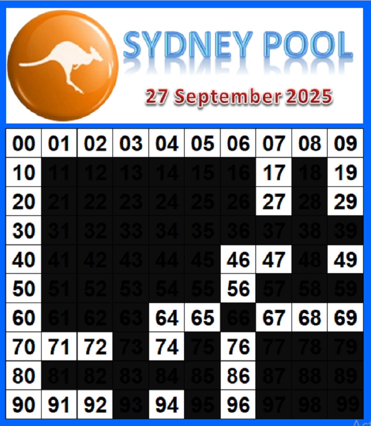 Prediksi Sydneypools Sabtu, 04-10-2025 | |