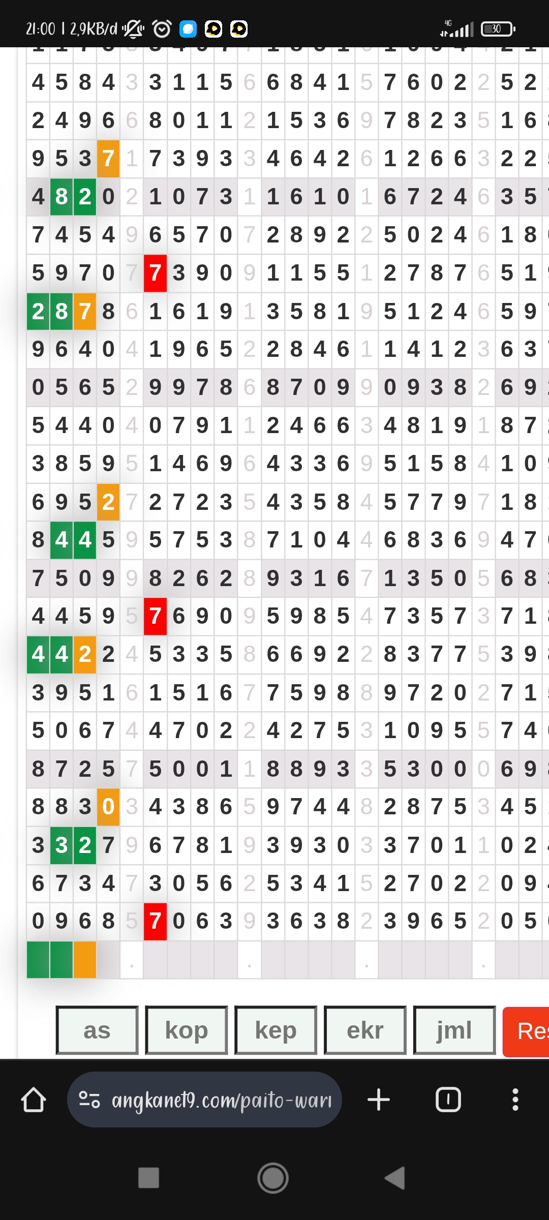 Rumus Angka Mati berdasarkan kepala harian05 06 08 10 15 16 17 18 19 20 21 26 27 28 29 30 32 37 38 39 40 41 43 48 52 53 54 63 64 65 74 75 76 86 87 94 95 97 98