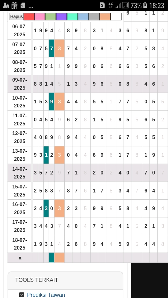 Prediksi Taiwan Sabtu, 04-10-2025 Merupakan Prediksi Otomatis yang menggabungkan Metode Kalender Togel Dengan LN Generator yang akurasi prediksinya sudah kita ketahui bersama. Jadi harap Maklum Jika kadang meleset Prediksi Taiwan kita. Jadikan ini sebagai perbandingan saja dan tetap Utamakan karya sendiri