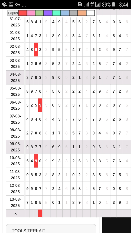 Rumus Angka Mati berdasarkan kepala harian | 04 05 06 07 08 09 10 15 16 17 18 21 26 28 29 30 31 32 41 42 43 52 53 54 64 65 72 73 75 76 83 84 86 93 94 95 96 97 98 |